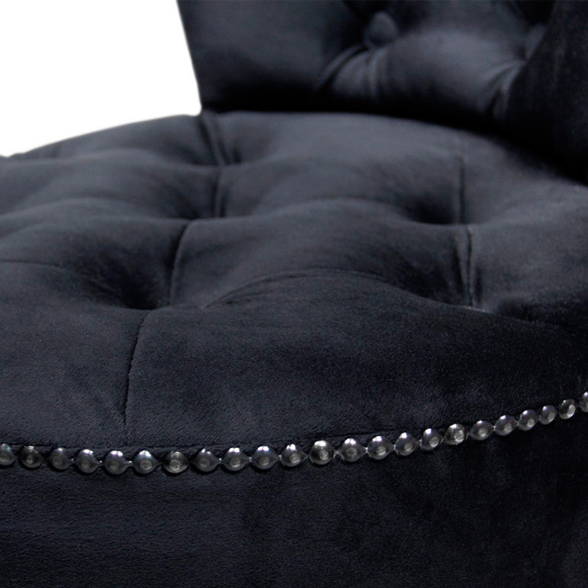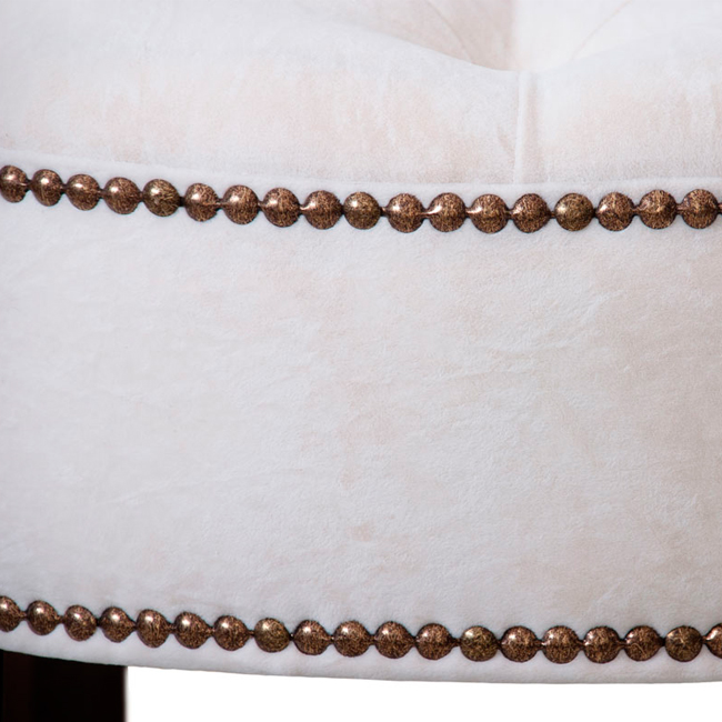 • Сиденье и спинка декорированы в технике капитоне и украшены декоративными молдингами. Каркас и ножки выполнены из бука. В качестве обивки рекомендуется использовать бархатистые, велюровые ткани.
