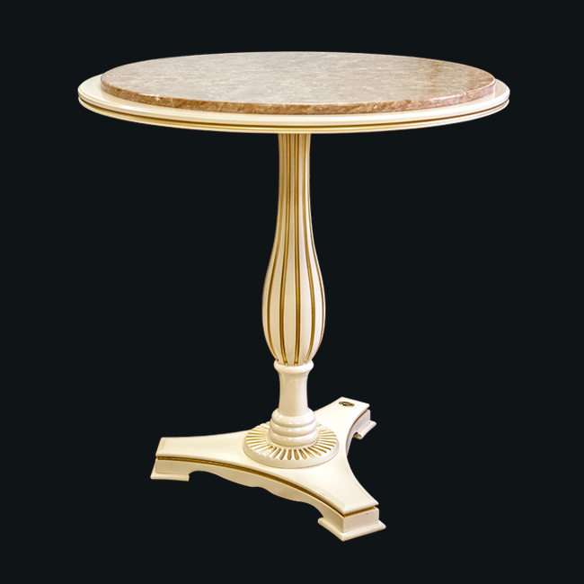 Стол кофейный из натурального дерева из разряда таких вещей, которые даже в единичном экземпляре способны создать романтичное настроение. А оно иногда просто необходимо и в общении с близкими, и с партнерами. Текстура березы столешницы, стройная ножка, резное основание — все вызывает удовольствие.  Цвет — слоновая кость, декорированная золотом.